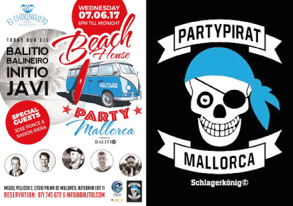 Die Beach House Party findet jeden Mittwoch ab 18 Uhr im El Chiringuito zwischen Balneario 7 und 8 statt und wird vom deutschen DJ Duo Balitio veranstaltet.
