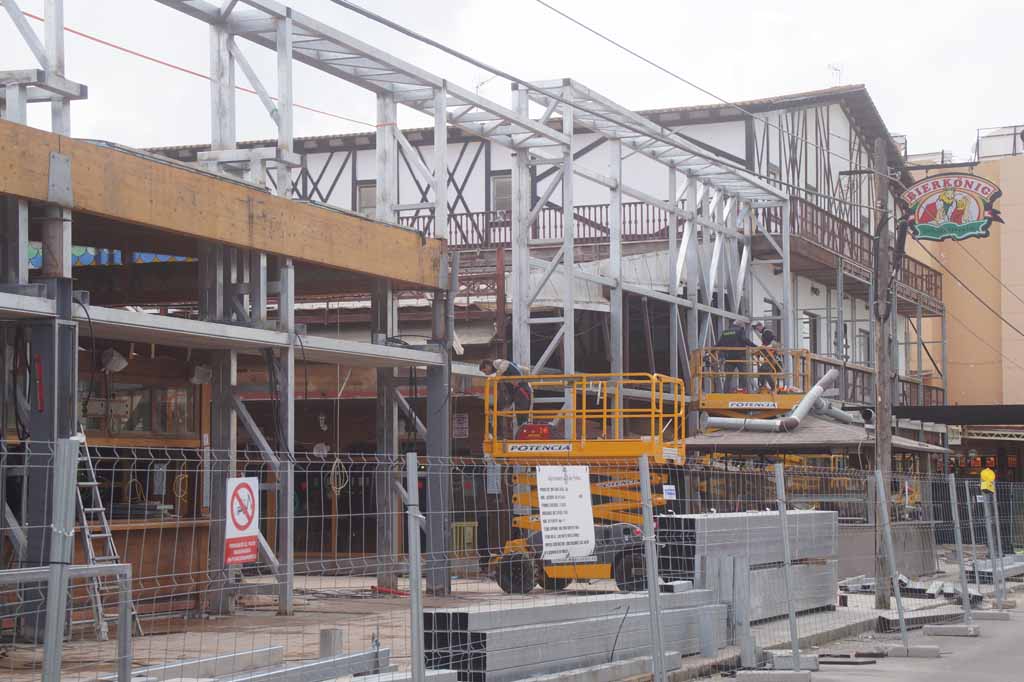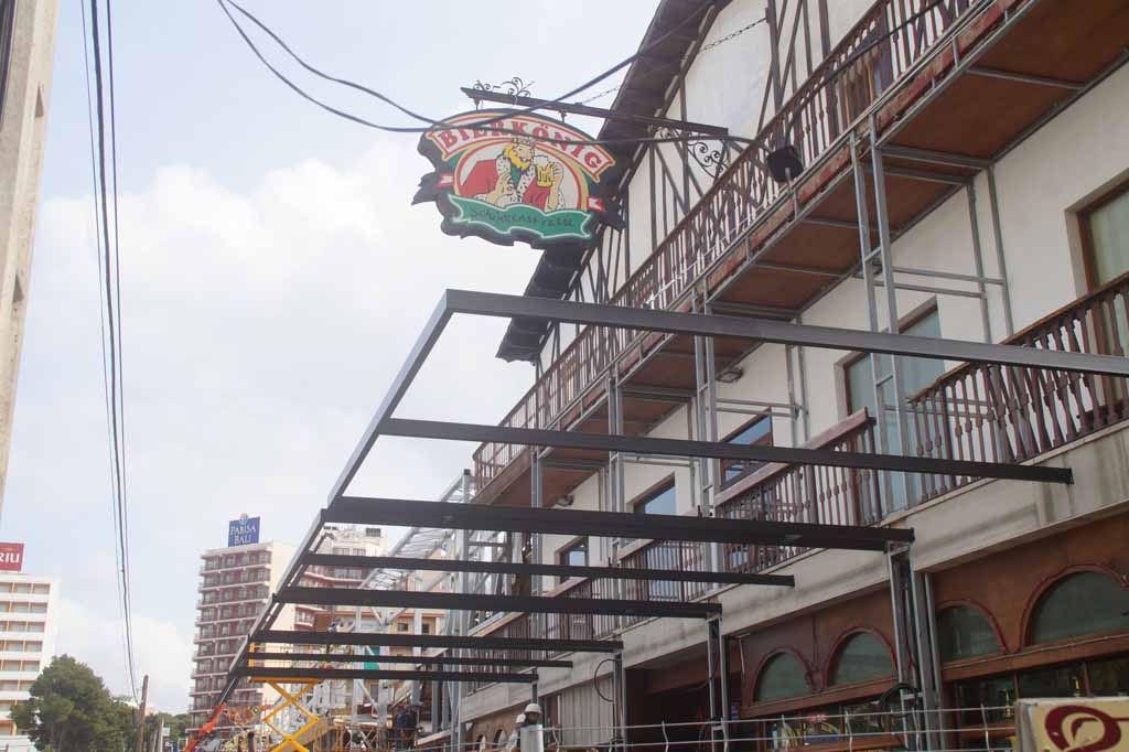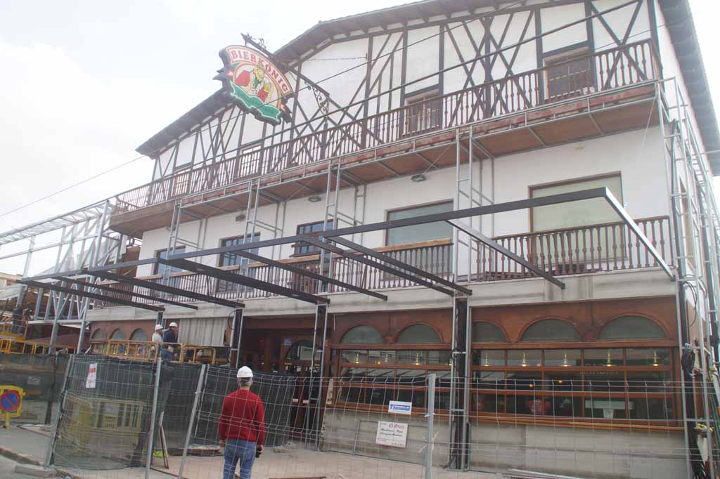 Mit massiven Trägern wird aktuell die neue Fassadenkonstruktion installiert und die Ausmaße werden nun deutlich sichtbar. Man könnte schon fast auf die Idee kommen, es gäbe bald ein 2. Stockwerk im gesamten Bierkönig.