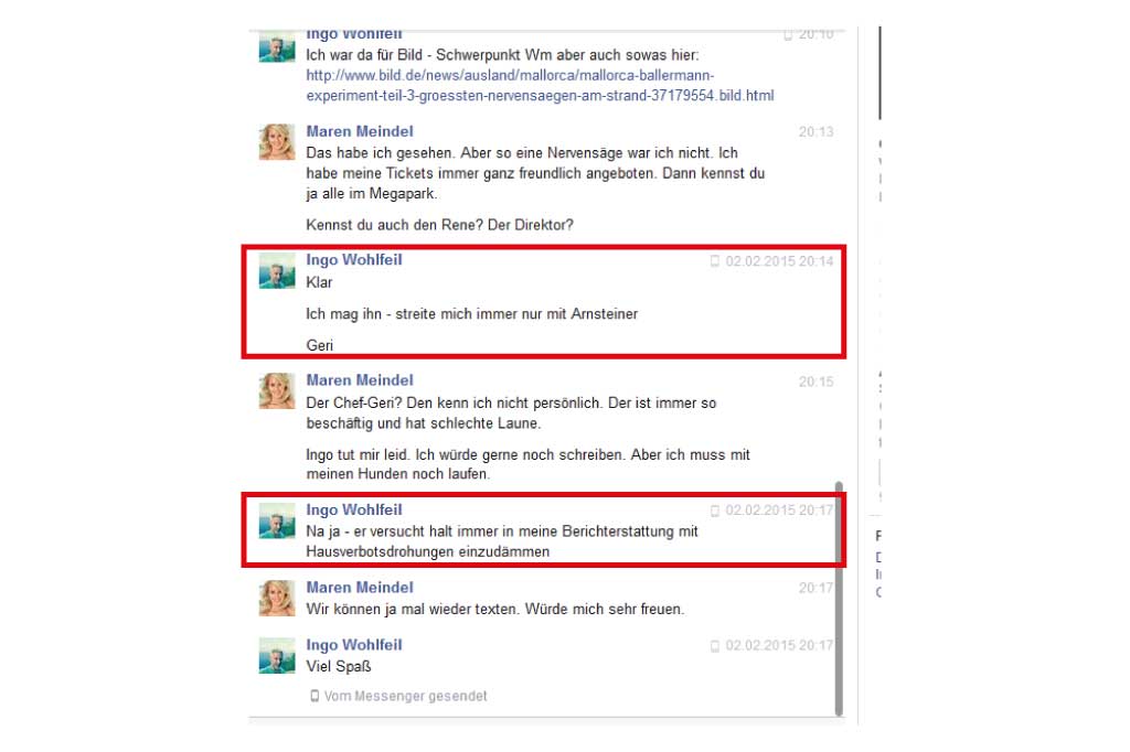 Das in Screenshots zu sehende Chat-Protokoll aus 2015, sollte mit den nun öffentlich bekannten Hintergründen gesehen werden. Besonders die dritte Seite der Unterhaltung, in der explizit von besagtem Reporter auf die Methoden in der Grupo Cursach hingewiesen wird. Öffentlich würde er sich niemals getrauen, dies zuzugeben oder auszusprechen! Um damit vor einer Blondine auf facebook zu prahlen, um den harten Max zu machen, scheint dies aber perfekt zu passen.