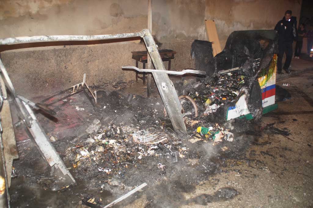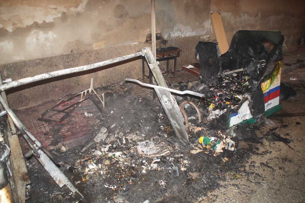 Innerhalb kurzer Zeit war die Feuerwehr inklusive der Polizei vor Ort und konnte den Brand recht zügig löschen. Durch das Feuer, welches mehrere Minuten brannte, wurden zwei Mülltonnen inklusive dem Inhalt zerstört. Da es sich um Plastik, Papier und Glas handelte, brannte das Zeug teilweise wie Zunder. Die Flaschen innerhalb des Feuers erhitzen sich, explodierten und verteilten den Brand noch weiter.