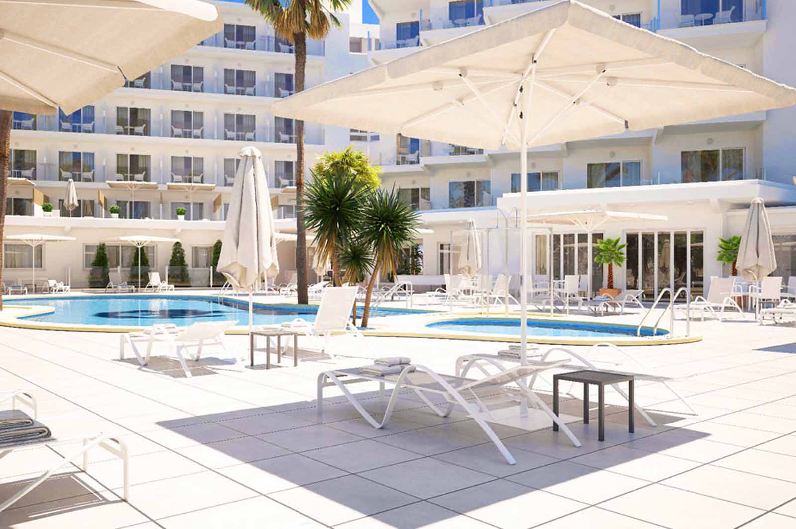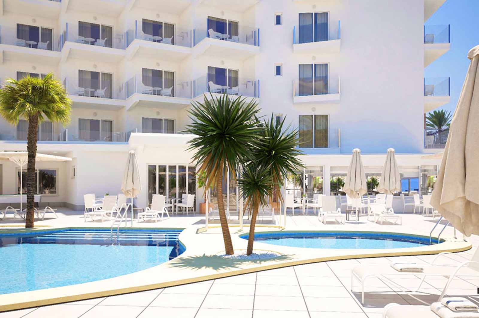 Der Pool- und Aussenbereich des Hotels wird in diesem Zuge ebenfalls erneuert. Beim Golden Playa wird wieder, wie an vielen anderen Hotels auch, sehr viel weiß an der Fassade verwendet.
