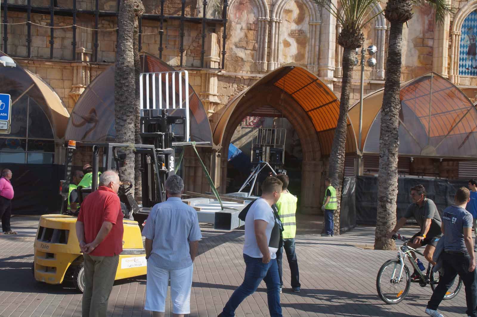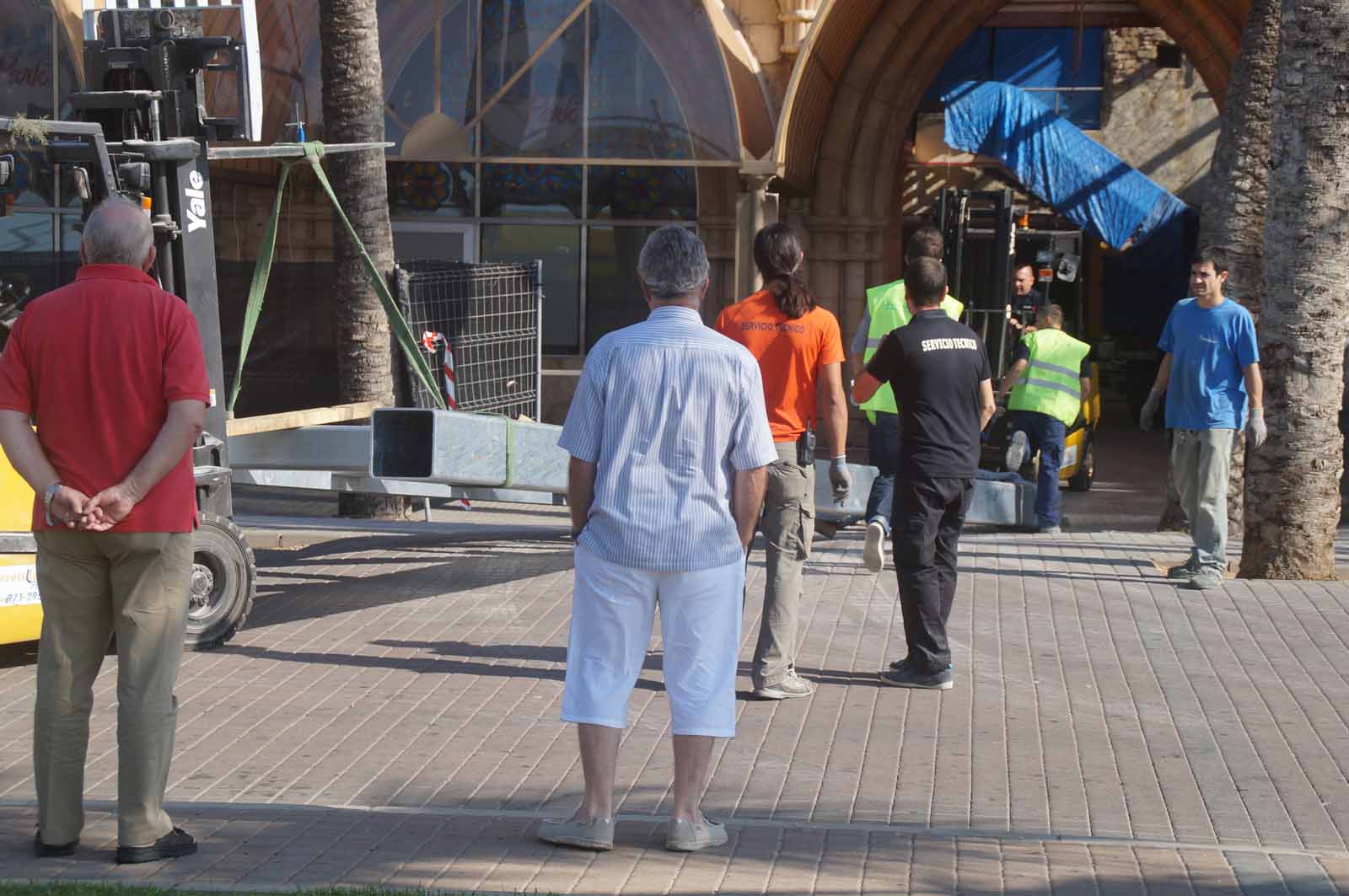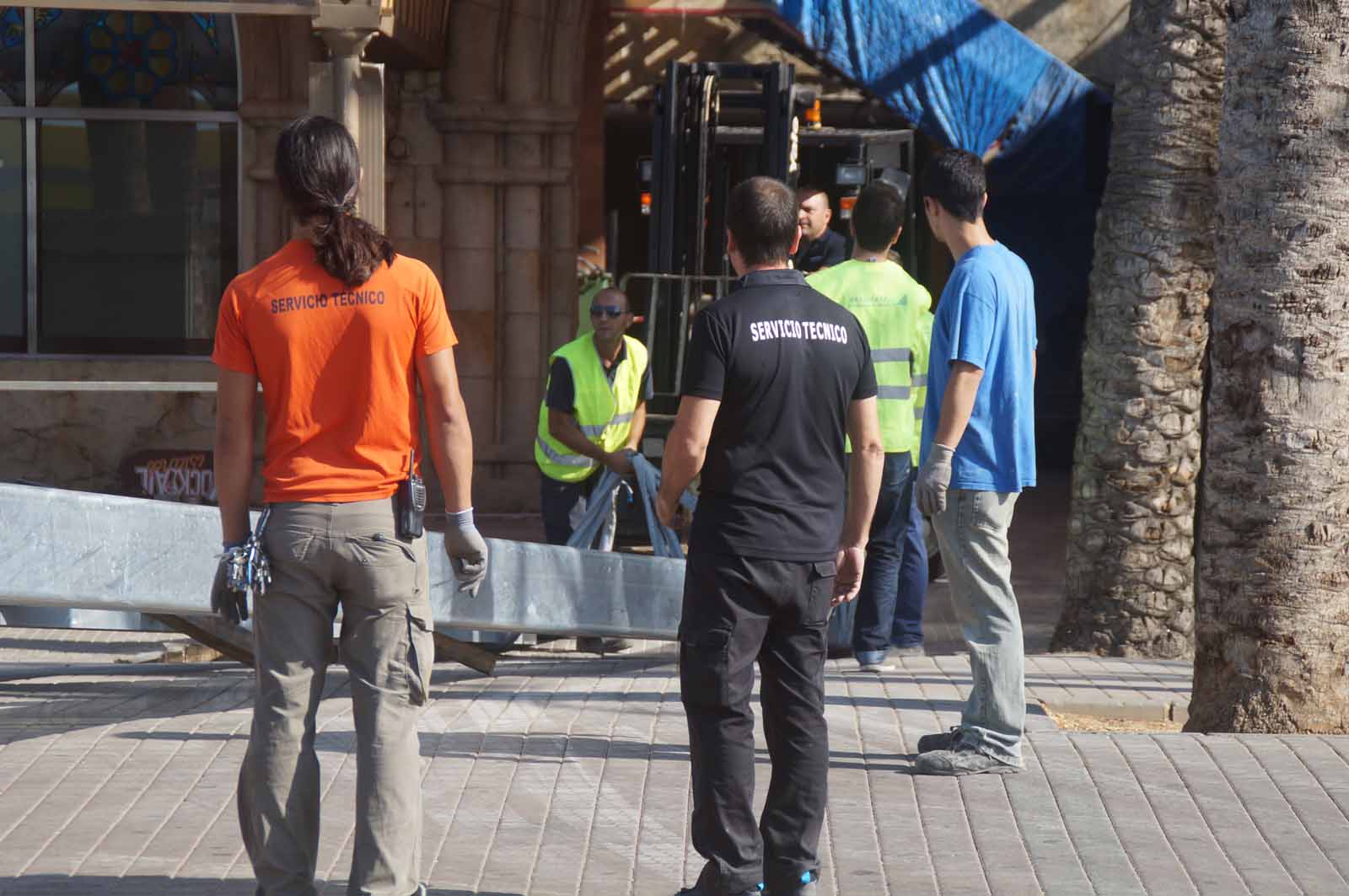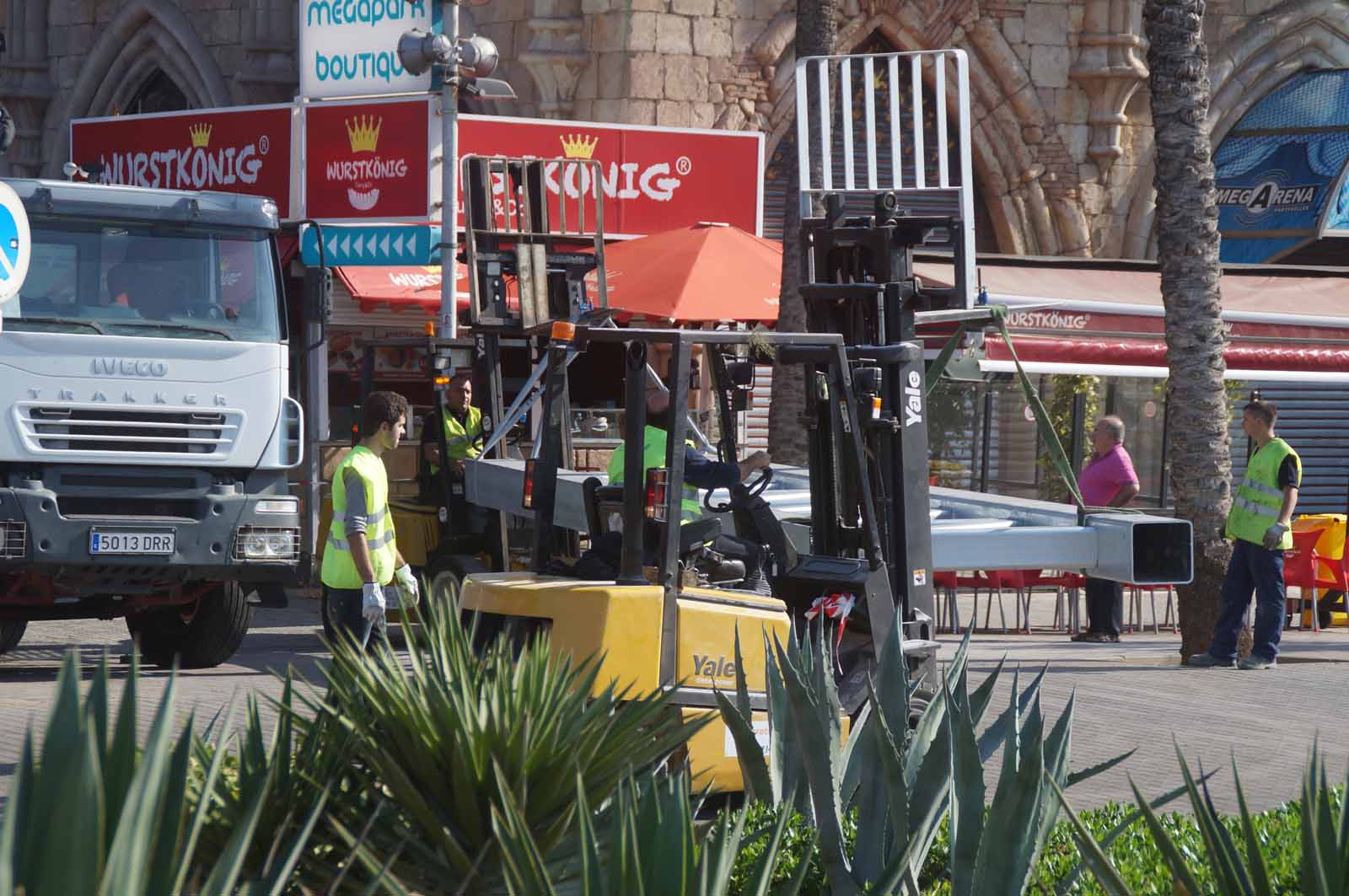 Die Arbeiter tragen weder Helme noch Sicherheitsbekleidung. Sämtliche Arbeiter sind Angestellte des Megapark und nicht etwa einer Baufirma. Eine legale Baustelle wäre bei einem solchen "Schwertransport" durch öffentlichen Raum ausgeschildert, abgesperrt und ein Beamter der Polizei wäre aus Sicherheitsgründen anwesend. Wie man gut erkennt passieren Urlauber die Transportwege, ebenfalls Radfahrer. In diesem Winter werden auch die Rolltreppen installiert, die man auf den Bildern am 15.12.2014 schon erkennt.
