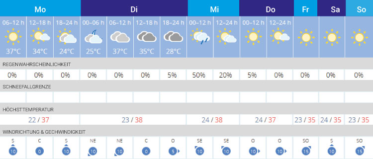 Für Urlauber und Touristen gehören Sonne, Meer und Hitze zum Gefühl für den perfekten Urlaub. Bis Sonntag soll das Thermometer tagsüber nicht unter 30 Grad fallen und verspricht Sonne satt.