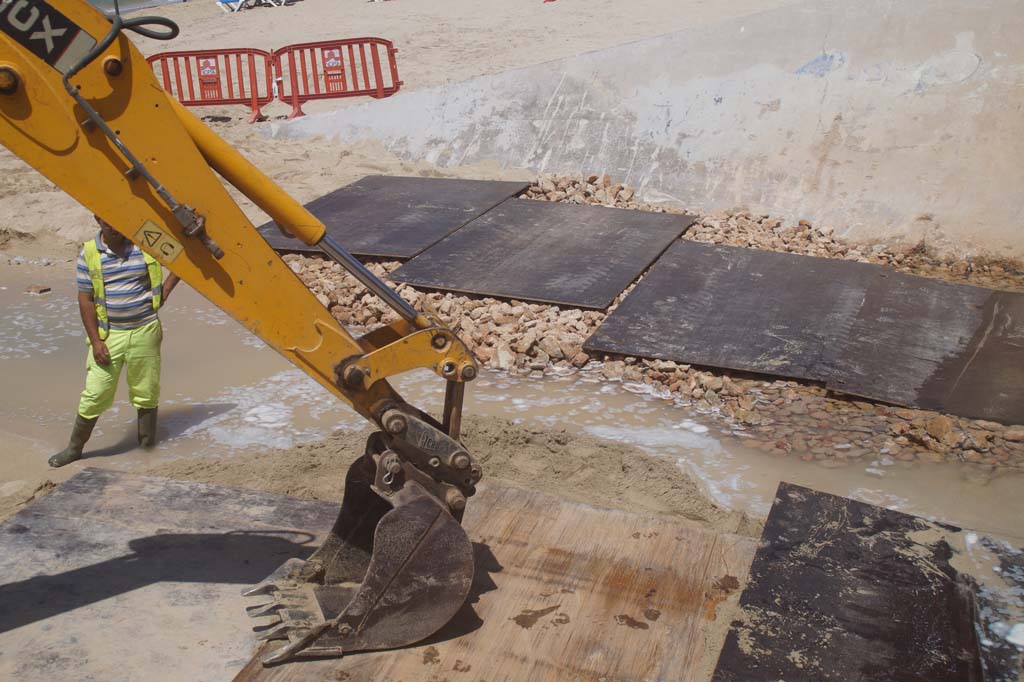 Vor dem Megapark sperrte man heute die Promenade um ein paar Metalplatten in den dort befindlichen Regenwasserablauf zu legen. Offenbar muss man diese ebenfalls in der Hochsaison platzieren und den Urlauber zeigen was man tut.