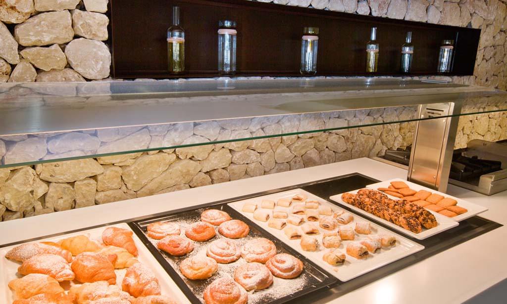 Die Hotelgäste können sich sowohl ihr Frühstück als auch das Abendessen an einem Buffet zusammenstellen. Es besteht die Möglichkeit, Halbpension zu buchen.
