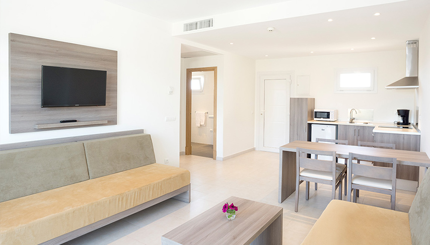 Nebenan gibt es in der Cafeteria Las Tres Torres Snacks, Frühstück und richtig gute mallorquinische Küche. Geöffnet von 09:00 Uhr liefert die Snack-Bar per Zimmerservice auch Speisen direkt ins Appartment.